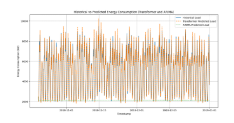 图1.历史与预测能源消费的比较(变压器模型与ARIMA模型)