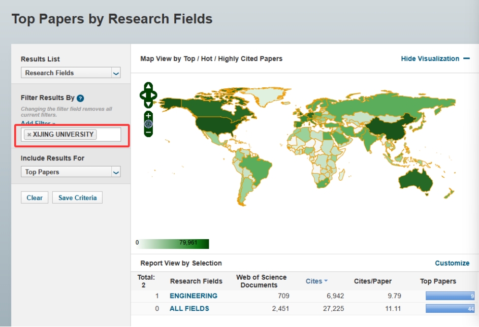 从论文发表与引用情况来看,本期西京学院被ESI数据库收录的论文共计2451篇,总被引频次为27225次。其中,高被引论文44篇,热点论文6篇。丰富的论文产出和较高的被引频次,充分体现了学校科研成果的质量和学术价值得到了国际学术界的广泛认可。