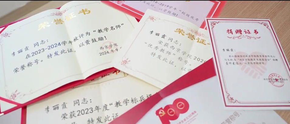 2024年教师节,李丽霞在自己的微信朋友圈分享了一组照片,照片里有荣誉、有鲜花、有蛋糕,有同事、有学生,也有她抱着教学名师的荣誉奖状、笑容灿烂的美好模样。