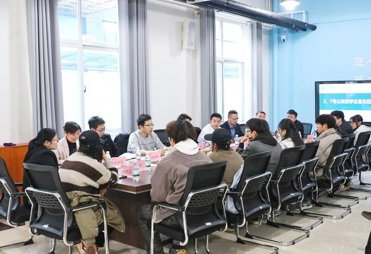 会议听取了学生代表关于入住2、7号公寓楼后的意见与建议,相关责任人就学生提出的问题进行了现场答复。