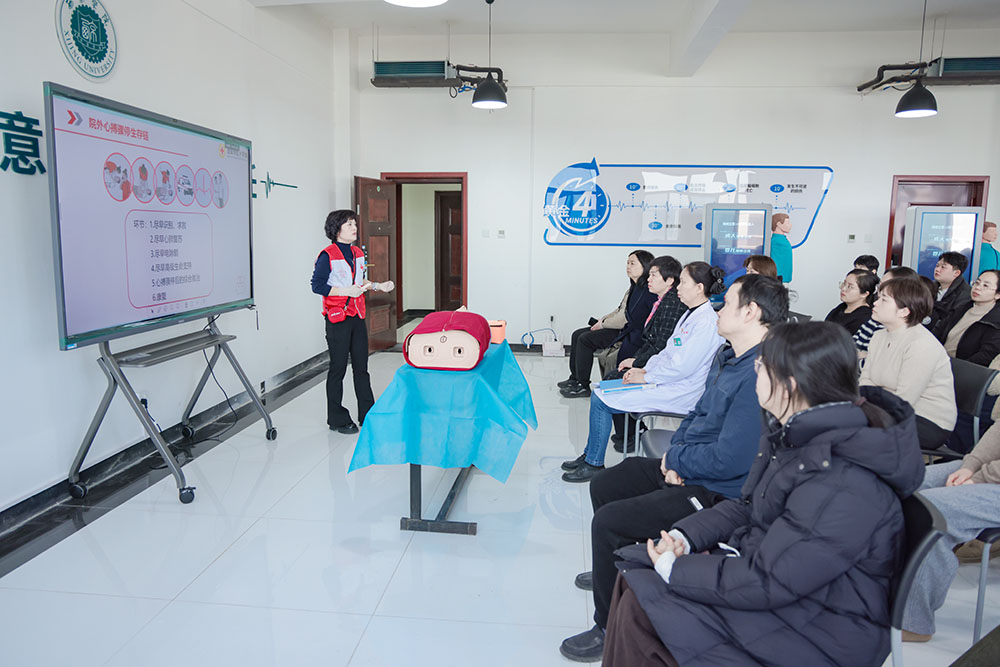西京网讯:1月14日下午,门诊部在科研楼八楼校园生命安全急救教育实训中心举办心肺复苏(CPR+AED)专项培训。培训面向全校各区域AED管理人员及相关教职工,旨在提升校园应急救护能力,长安区红十字会专家团队进校指导。
