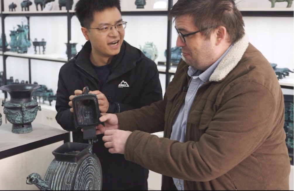 此前,学院英国籍教授罗宾·吉尔班克完成了文化探索纪录片《宅兹中国》的制作。该片基于其在陕西长达十七年的生活经历,通过探访宝鸡青铜器博物院、周原遗址及扶风县等地,解读何尊铭文内涵,考察西周礼制实践,体验传统青铜器失蜡法铸造工艺。纪录片从外来学者视角探讨了“宅兹中国”的地理与文化意义,以及古代技艺的传承与影响。罗宾教授表示,此次探索成果将融入其教学工作。