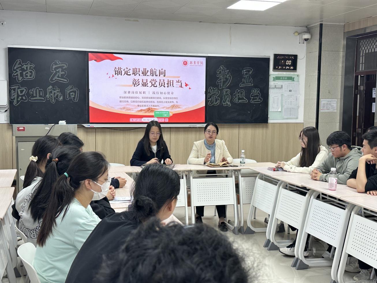 为引导学生明晰职业发展路径、提升就业核心竞争力,4 月17日,24 级应用化学、新能源材料与器件专业联合开展职业规划交流座谈。本次活动特邀校外辅导员、陕西智通行达企业管理咨询有限公司行政副总陈卫妮与两个专业全体入党积极分子、发展对象围绕大二学生职业规划深入交流。