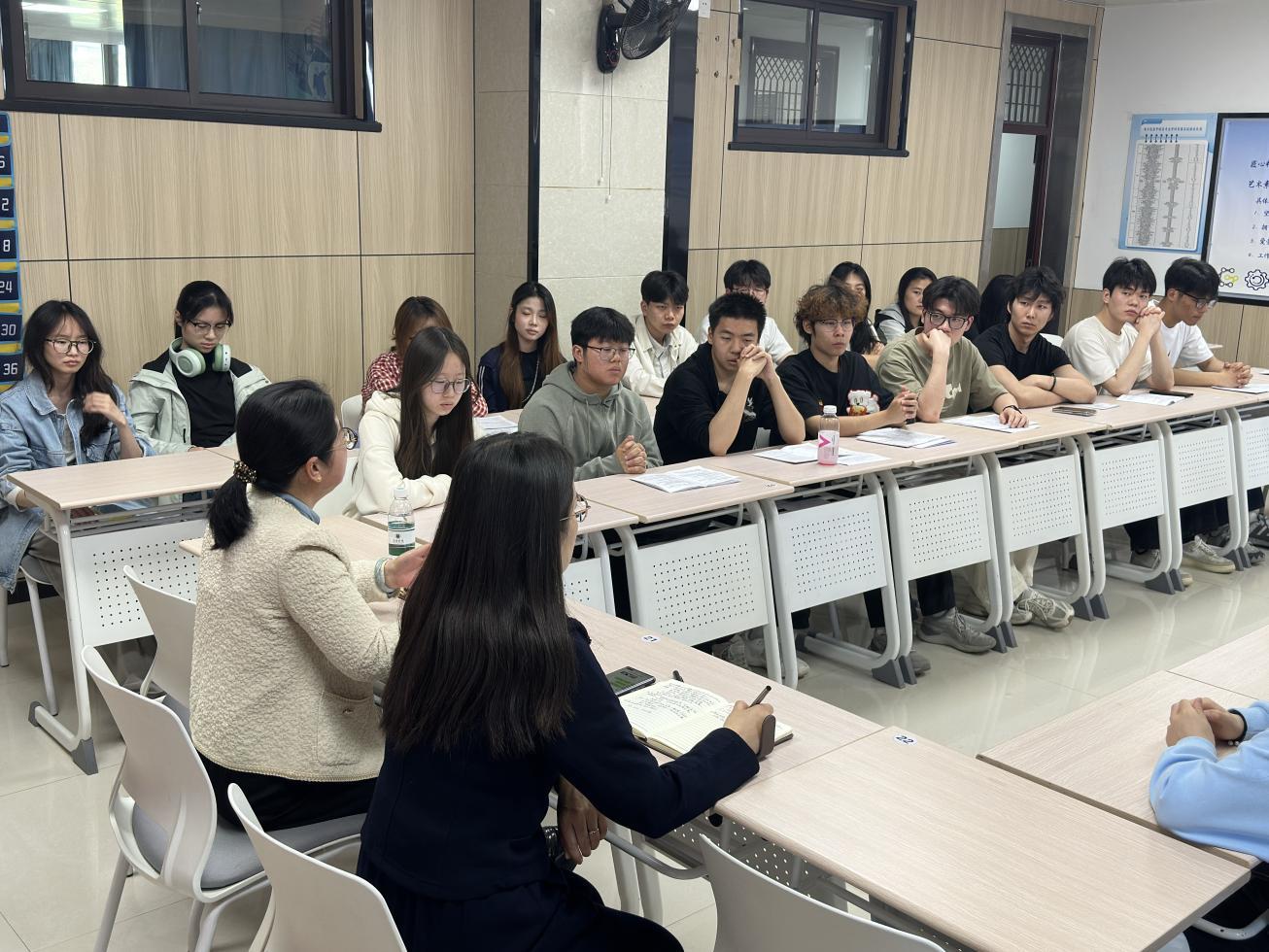座谈中,陈卫妮老师结合自身从业经验与行业发展趋势,聚焦职业方向确定、专业技能储备等学生关切问题展开分享。她建议同学们立足专业特色,结合个人兴趣与能力明确发展定位;紧盯行业岗位需求,强化专业学习与实践锻炼,系统储备就业所需技能;理性看待就业竞争,以动态思维调整规划,稳步提升综合素养。