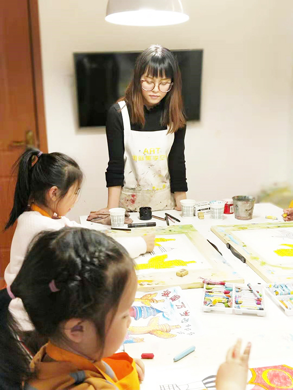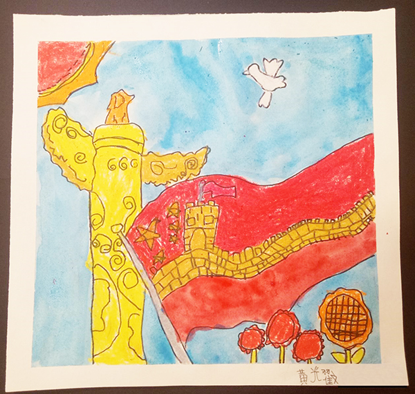 活动结合学生专业特色,与美术教学相结合,激发学生的爱国激情。活动整体分三部分开展,第一部分,学生党员给小学生讲“弘扬爱国奋斗精神、建功立业新时代”的内容和意义,作为一名小学生应有的爱国情怀,聆听小学生们各自表达自己的想法。第二部分,学生党员带领小学生们进行爱国色彩画的制作。第三部分,小学生们展示自己的作品,并根据作品抒发爱国情怀。