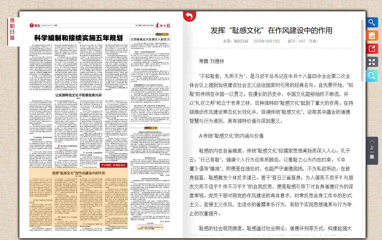 文化基因的同源性。从“克己奉公”的廉政理念到 “勤俭节约”的生活准则,从“求真务实”的工作态度到“为民请命”的担当精神,传统耻文化蕴含党的作风建设要求的思想文化基础。这种文化基因的同源性,使耻文化能够自然融入党的作风建设,增强文化认同与情感共鸣。