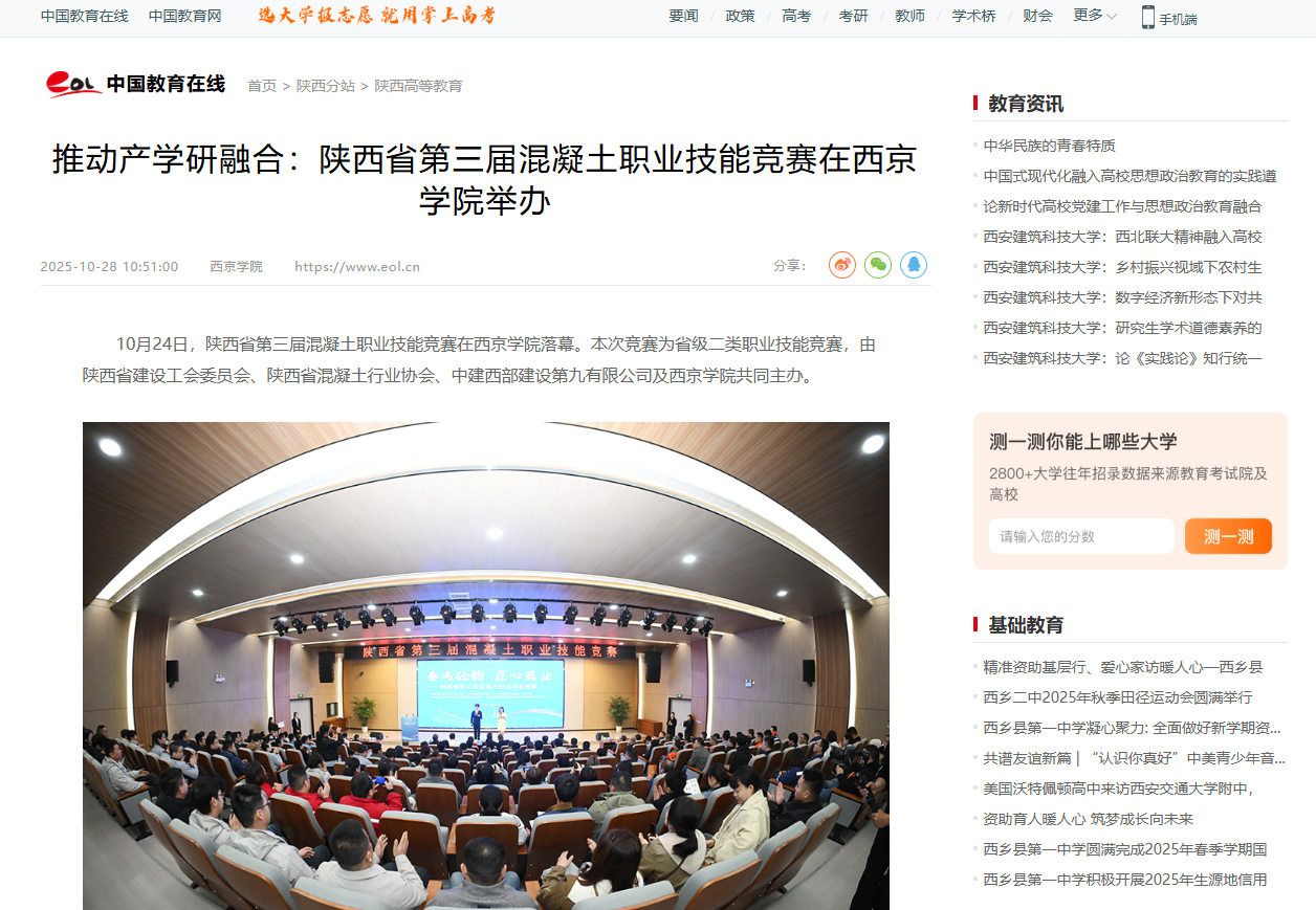 推动产学研融合:陕西省第三届混凝土职业技能竞赛在西京学院举办