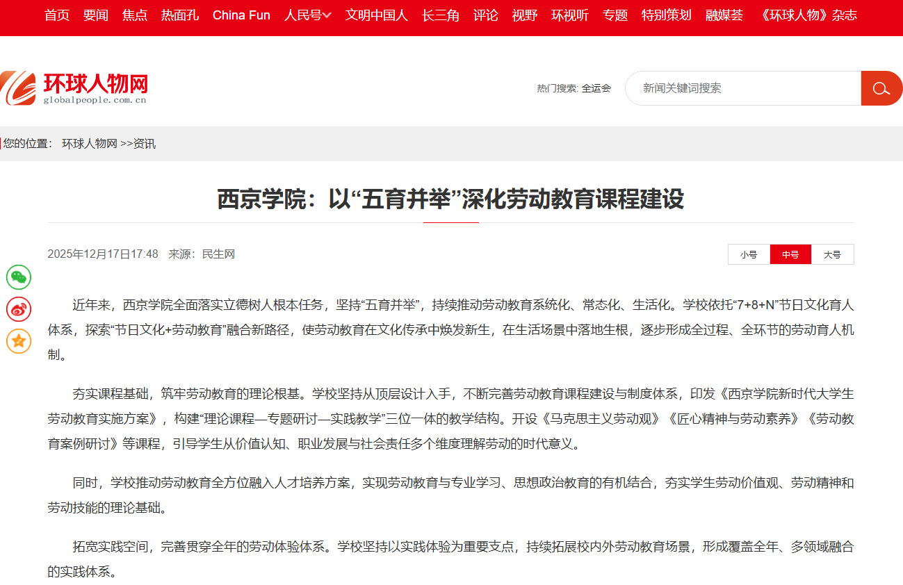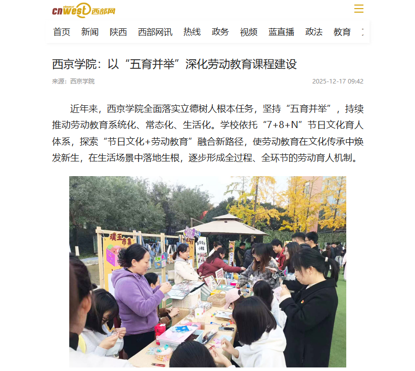 近年来,西京学院全面落实立德树人根本任务,坚持“五育并举”,持续推动劳动教育系统化、常态化、生活化。学校依托“7+8+N”节日文化育人体系,探索“节日文化+劳动教育”融合新路径,使劳动教育在文化传承中焕发新生,在生活场景中落地生根,逐步形成全过程、全环节的劳动育人机制。