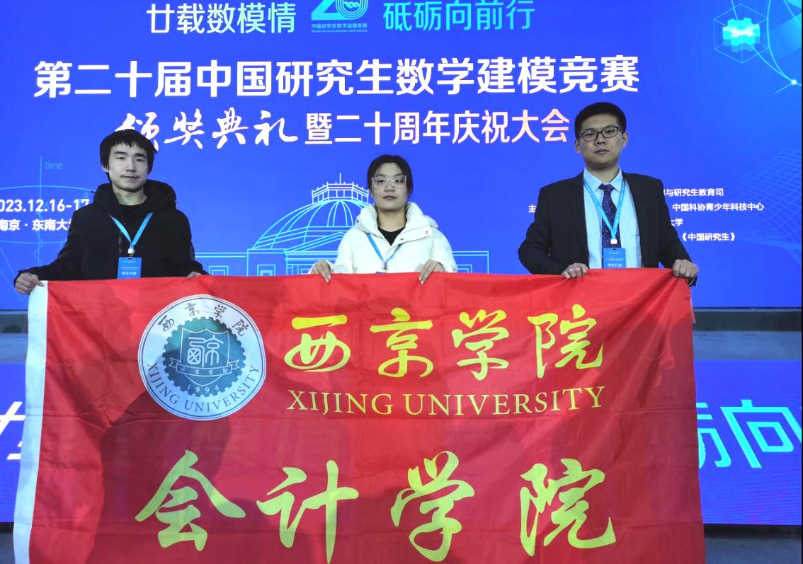 西京网讯:12月16至17日,第二十届中国研究生数学建模竞赛颁奖典礼在江苏南京举行。由我校审计研究生导师李建辉教授指导,会计学院审计专业硕士研究生蔡明轩、胡智华、宋淑贤组成的参赛队在本届比赛中荣获全国一等奖并受邀参加庆典。