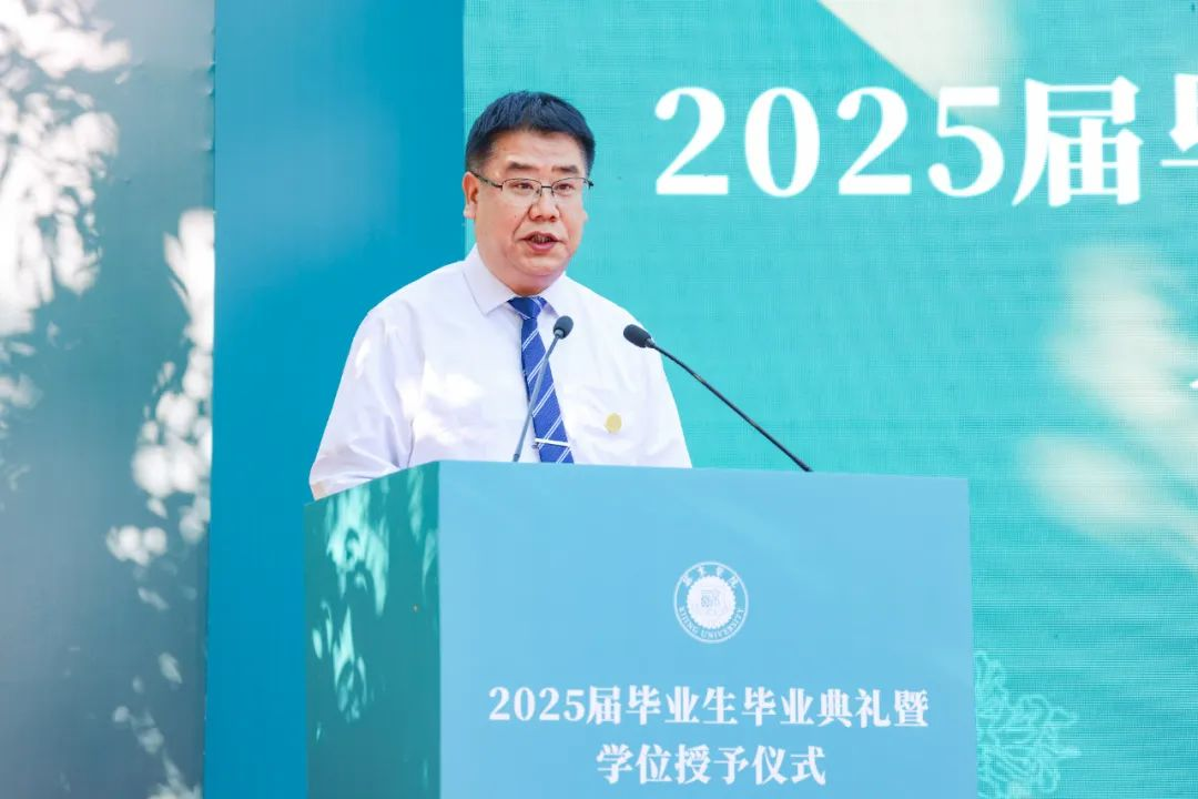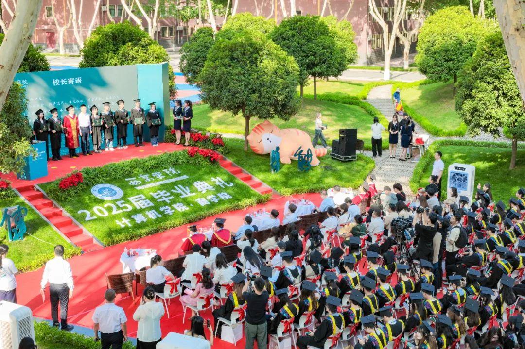 春华秋实又一年,骊歌声声再响起。6月17日上午,计算机学院、商学院2025届毕业生毕业典礼暨学位授予仪式在聚贤广场举行。校长任芳、党委书记李邦邦等校领导出席毕业典礼,校学位评定委员会委员与现场师生、学生家长、返校校友共同见证874名毕业生迈向人生新征程的重要时刻。