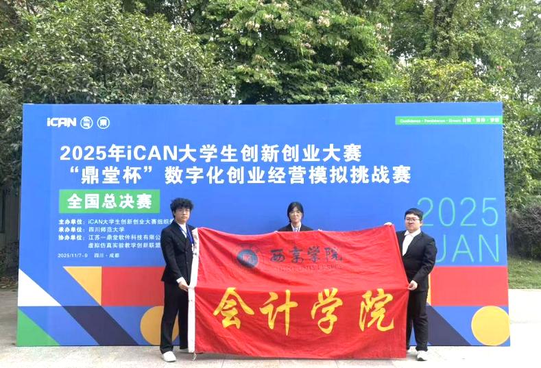 在创新创业类竞赛中,会计学院学子表现尤为突出。11月7日至9日,在由高等学校国家级实验教学示范中心联席会经济与管理学科组牵头主办的2025年iCAN大学生创新创业大赛“鼎堂杯”数字化创业经营模拟挑战赛全国总决赛中,会计学院参赛团队荣获国家级二等奖。iCAN大赛是纳入全国普通高校大学生竞赛排行榜的A类核心赛事,影响力广泛。此前的10月17日至19日,由高等学校国家级实验教学示范中心联席会经济与管理学科组主办的第十二届“学创杯”全国大学生创业综合模拟演训活动总决赛上,由会计学院赵博、伍昌贤、王煜缘三位同学组成的“启明”队,继获得陕西省一等奖后,在全国总决赛中再度发力,卫冕财务决策赛道国家级特等奖。