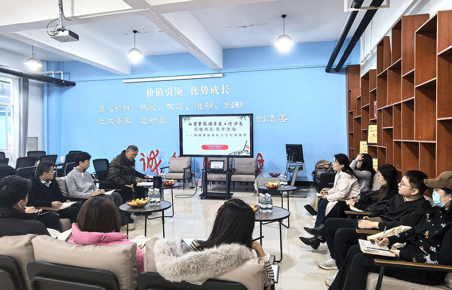 西京网讯:11月28日,第12期“赋能成长 筑梦领航”辅导员工作沙龙在辅导员之家举办。活动由“军魂筑梦”辅导员工作室承办,聚焦“备好讲好大学军事课程”主题,旨在提升辅导员依托军事课程开展立德树人的能力。