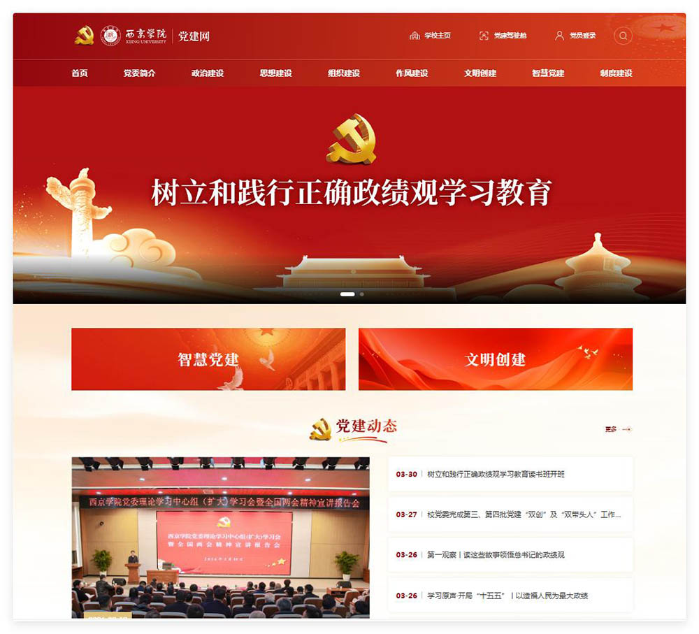 西京网讯:为进一步提升学校党建工作信息化、规范化、智能化水平,经过精心筹备与建设,改版升级后的西京学院党建网(以下简称党建网)于4月3日正式上线运行。