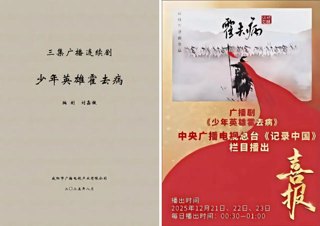 刘鑫傲编剧的《少年英雄霍去病》围绕西汉名将霍去病的传奇生涯,采用新颖的古今穿越叙事手法,用声音塑造出“封狼居胥”的少年英雄形象,深刻展现了英勇无畏、保家卫国的豪情与精神。该剧将参与今年陕西省重大文艺精品项目评选工作,与其他优秀文艺作品同台角逐。