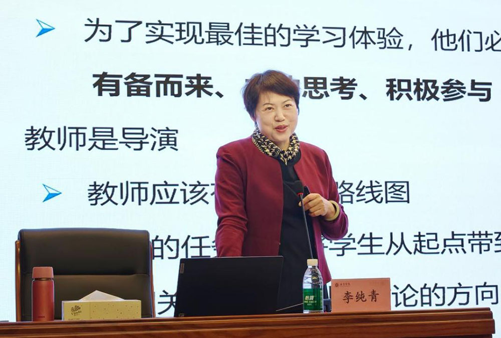 李纯青教授以“案例教学的探索与实践”为题,结合自身教学研究和一线实践经验,阐释案例教学的核心内涵与规范实施步骤。她系统解读“三案融合”育人模式,讲解案例教学、案例开发与案例研究的相互关系,说明该模式可聚焦培养学生“五能力”与“五素养”,实现价值塑造、知识传授与能力培养的有机融合。