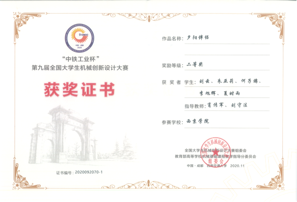 西京网讯:近日,第九届全国大学生机械创新设计大赛落下帷幕。我校刘云等同学设计制作的作品“夕阳伴侣”获全国二等奖。