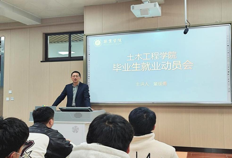 3月,土木工程学院召开了2023届毕业生就业动员大会。副院长童绥勇为330余名毕业生讲述了国际国内就业形势,尤其,我国今年高校应届毕业生达1076万人,同比增加167万人,严峻的就业压力,考验着我们每一个人。针对一部分学生不就业、慢就业,懒就业等现象提出了解决方法和思路,充分调动学生就业认知,激发学生就业积极性。会后,学生自发与童院长就择业方式方法等方面跟学生做了深入交流。