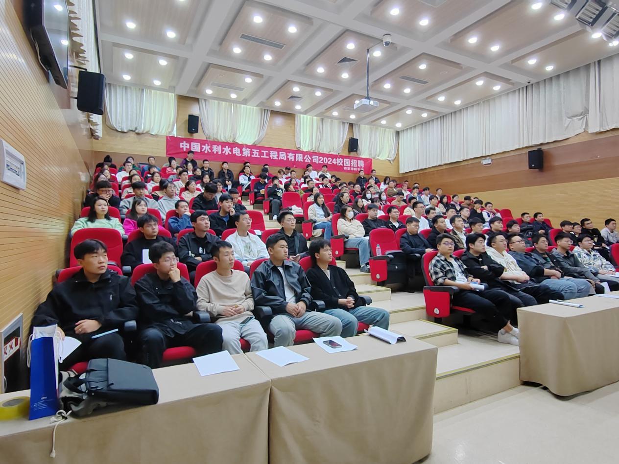 随后,水电五局在报告厅开展了“中国电建寻找发光的你”校园招聘宣讲会,参加宣讲会的有160多名2024届毕业生。最终通过简历筛选有30多名毕业生进入了面试环节。