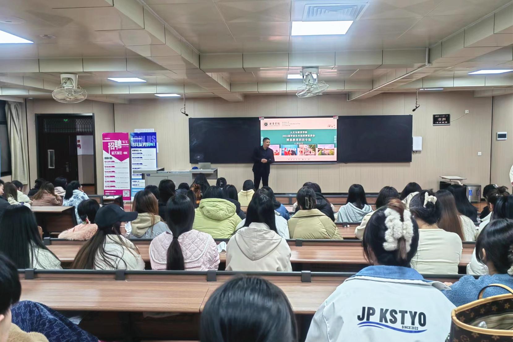 为做好2024届毕业生就业推荐工作,进一步搭建学生就业平台,实现精准就业。11月22日晚上,人文与教育学院就业专场宣讲会在3206教室举行。博恩教育科技、景岳研途教育两家企业分别宣讲,190余名毕业学生参与。