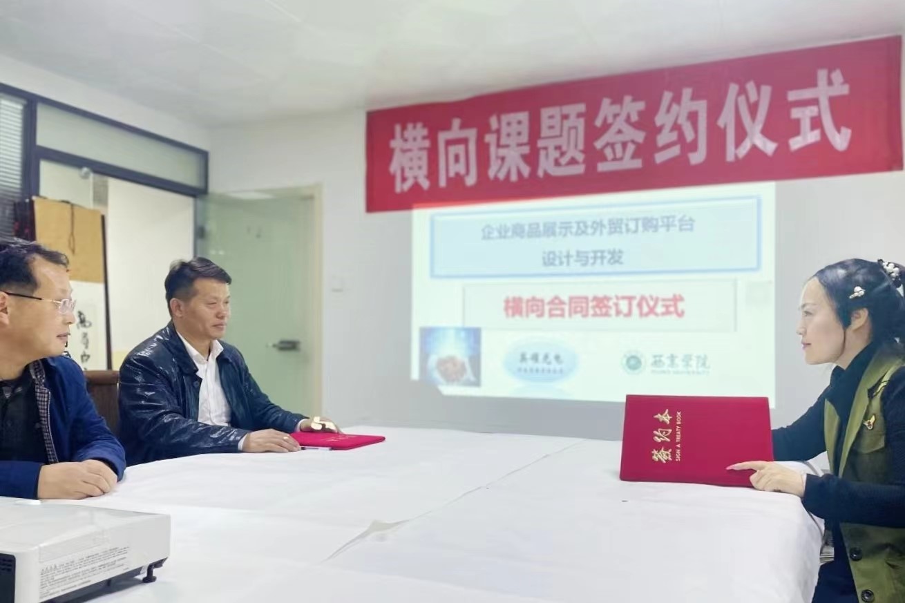12月6日,商学院教师马静与西安英硕光电科技有限责任公司成功签署横向课题,金额为51万元。该课题将国际经济与贸易专业多门核心课程和全国高校商业精英挑战赛会展专业创新创业实践竞赛进行融合,实现了将校企合作项目深度服务于“产学研”发展的目标,搭建了一条专业课程建设以企业需求为导向、专业发展以产业集群构建为方法的“产学研”发展之路。