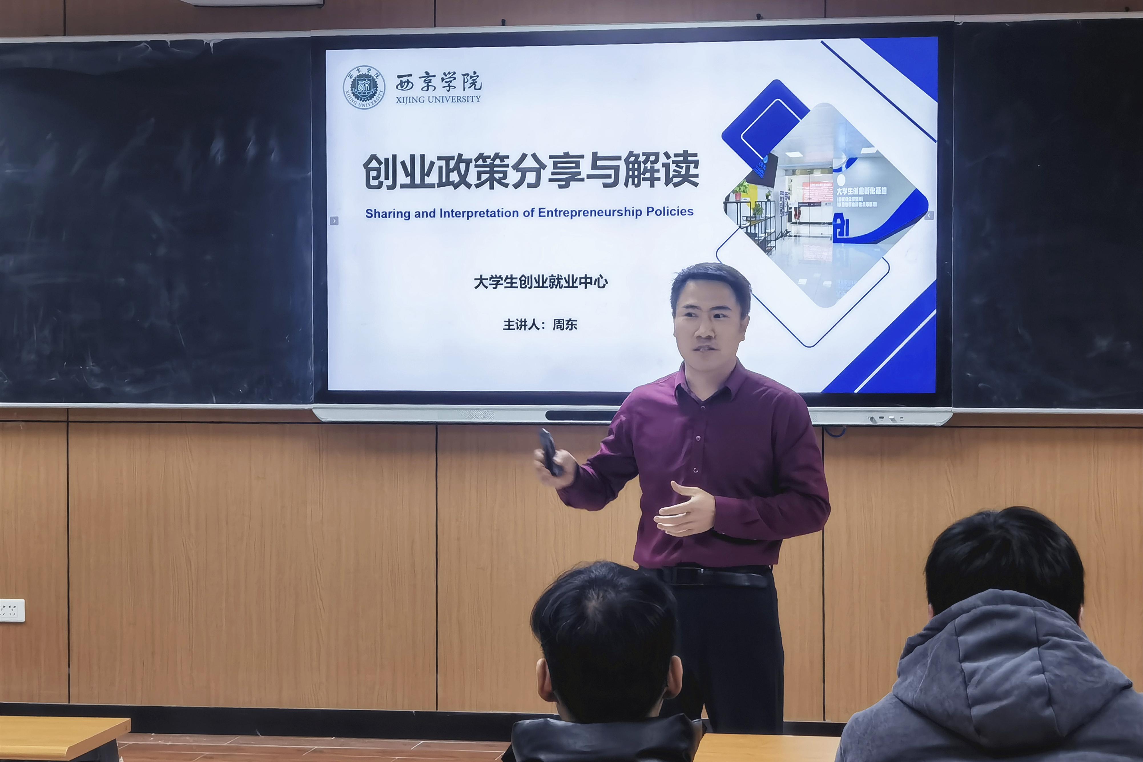 会上,周东老师介绍了创新创业孵化基地的基本情况,详细解读国家和学校的创业政策,分享创业成功案例,指出在这个充满机遇和挑战的时代,大学生创业已经成为一种新的选择,大创将提供创业指导服务,帮助同学们了解创业环境,提升创业能力。