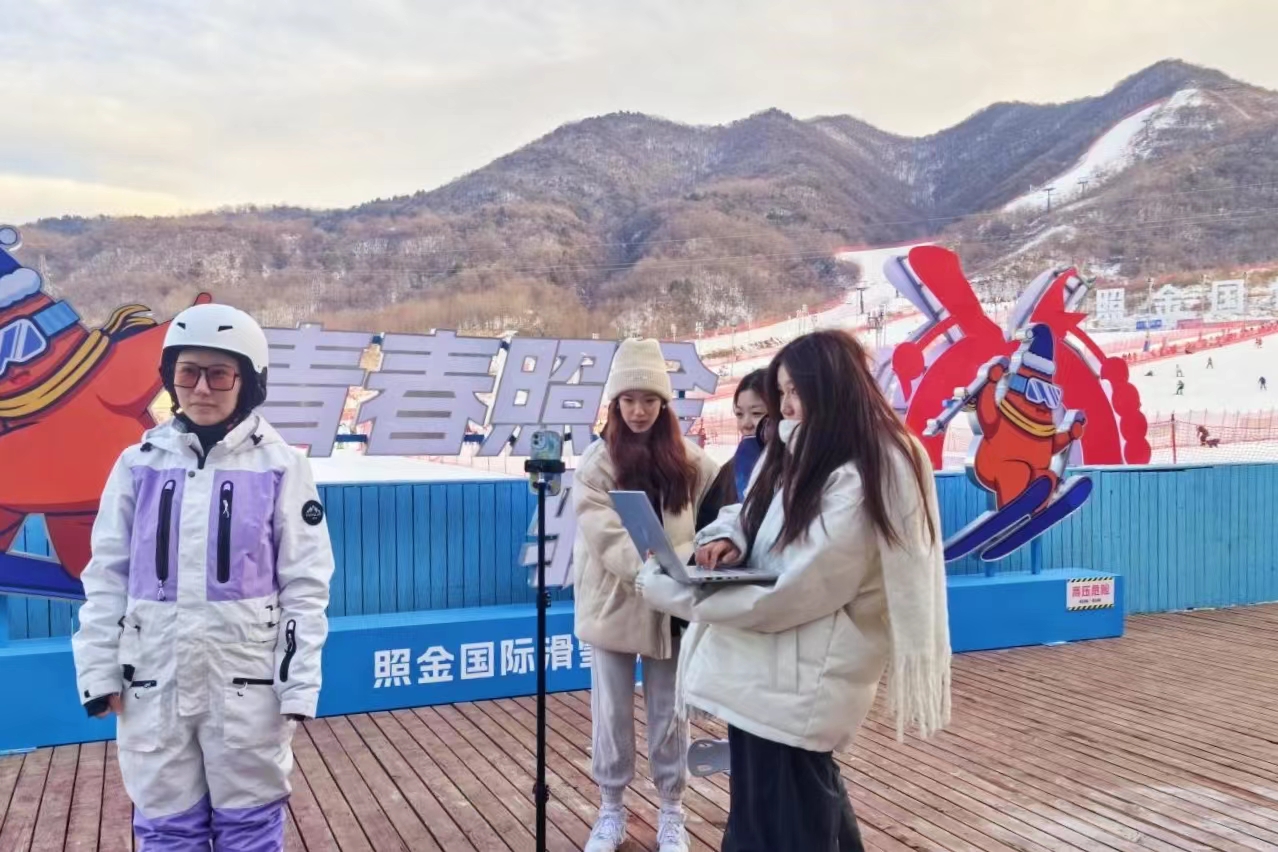 师生团队在下午时分来到风景如画的照金国际滑雪场。在此之前,学生团队已经通过抖音直播间进行了一系列预热宣传,以直播和短视频的形式,向大家介绍照金国际滑雪场的魅力。通过在滑雪场现场直播,利用照金国际滑雪场的场地优势,吸引众多游客和消费者的关注,真实地向观众展示滑雪场的现场气氛,给广大滑雪爱好者提供更优惠的滑雪票务,吸引更多滑雪爱好者及游客前去体验。