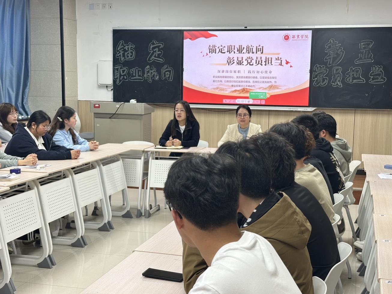 为引导学生明晰职业发展路径、提升就业核心竞争力,4 月17日,24 级应用化学、新能源材料与器件专业联合开展职业规划交流座谈。本次活动特邀校外辅导员、陕西智通行达企业管理咨询有限公司行政副总陈卫妮与两个专业全体入党积极分子、发展对象围绕大二学生职业规划深入交流。