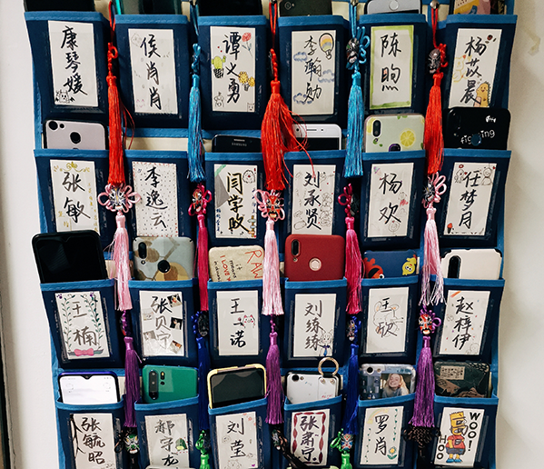 为加强大学生学习自觉性,提高课堂效率,营造珍惜课堂,远离手机的良好氛围,班级制作以弘扬传统文化为主题的特色手机袋,一个个脸谱的挂件和同学们风格各异的标签设计为手机袋增色添彩,此次活动对建设学风有很重要的意义,加强了班级纪律,改善了学习风气。