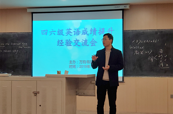 为加强学风建设,增强学生学习兴趣,提高英语四六级考试过关率。11月20日,万钧书院联合机械工程学院在图书馆302报告厅开展了英语四六级成绩提升经验交流会。本次交流会邀请我校外国语学院梁剑波老师主讲,万钧书院100名学生参加。