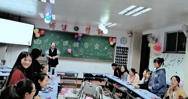 各班级召开了心理主题班会,会上,班级心理委员向班级讲解心理健康知识,组织系列小游戏,让同学们放松自我,排解压力。同学们能够积极发言,展开探讨,在愉快的班会中调节了紧张的情绪,通过本次主题报告会不仅使同学们学习了心理健康知识,而且对自身的心理发展有了更深入的认识。