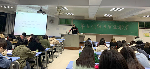 毕业生就业安全教育工作事关学校的稳定大局,2020届毕业生正处于就业求职阶段,为维护毕业生的合法权益,保障毕业生人身安全,促进我校毕业生安全、顺利就业,书院通过主题班会等多种形式开展就业安全教育,增强毕业生自我保护意识,提升对各种社会招聘信息的分辨力,学会利用法律武器保护自身的合法权益,切实加强了毕业生就业安全教育,增强了毕业生的安全意识和自我防范能力。