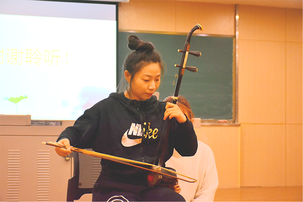 最后,王雯雯又为师生们现场表演了二胡独奏,弦声悠扬婉转、动人心弦,营造了浓厚的民乐氛围,提升了同学们的民乐感知和对民乐文化艺术的追求。