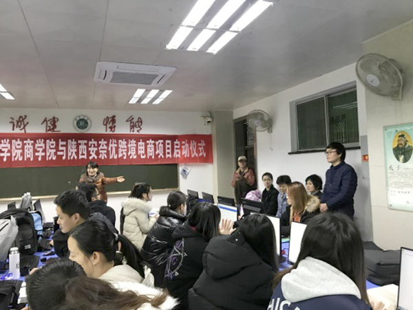 11月27日,商学院与陕西安奈优跨境电商平台校企合作项目启动仪式在2531教室举行。陕西安奈优商贸有限公司董事长茹虹女士、商学院学科带头人杜永红教授、跨境电商专业教师职红安等出席仪式,电子商务专业部分学生代表参与了此次启动仪式。