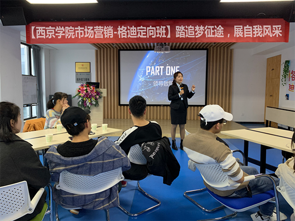 11月27日下午,在曲江国际金融中心西安格迪企业管理有限公司总部格迪商学院教室,成功举行了以“踏追梦征途,展自我风采”为主题的西京学院商学院市场营销格迪定向班第二期开课活动。参加活动的有格迪公司人力资源中心兼行政管理中心总监张静、格迪公司人事主管郭璐、格迪商学院培训讲师杨军超、第二期定向班学员及商学院市场营销专业教师。