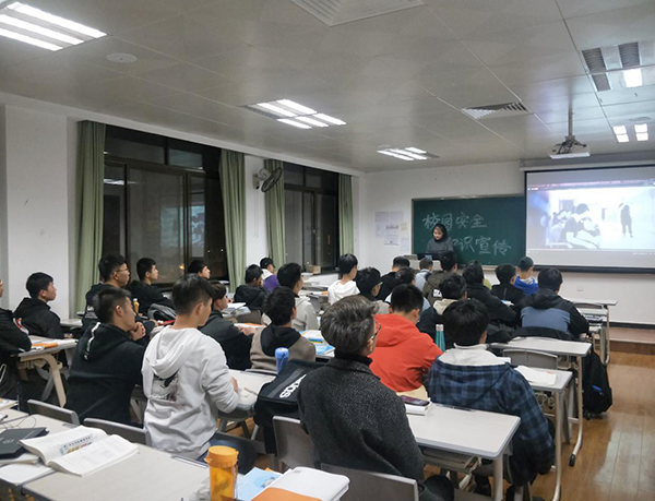 活动中,各班辅导员首先将学生们收集的关于“校园安全”的重要新闻及相关安全事件进行展示,并播放校园安全宣传片。之后,引导学生针对安全事件的责任和后果展开讨论,并提出校园安全措施的建议。活动最后由各班团支书对本次学习活动进行总结,提出在班级内开展安全稳定活动的具体计划。