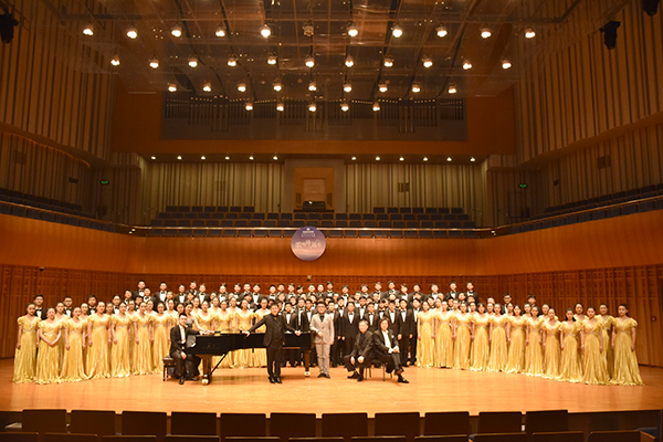 整场音乐会都让行健合唱团的团员感动不已,现场唱起了热烈而激动的掌声。合唱团代表手捧鲜花,上台为歌唱家送上了美好的祝福。著名歌唱家戴玉强与行健合唱团团员亲切合影留念。