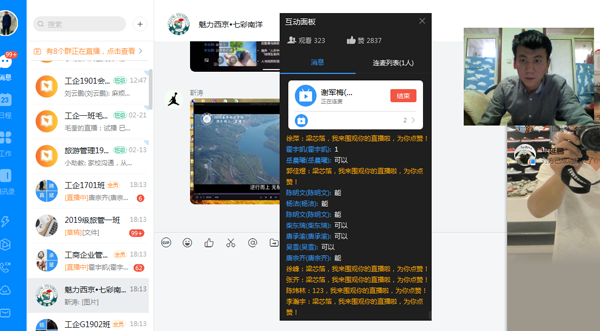 为进一步加强在疫情防控期间对学生学习生活的指导,根据学校的统一安排和部署,南洋书院于2月28日下午,依托钉钉平台,以直播形式组织召开了以“2020春季西京学院师生同上一堂课”为主题的线上班会,为学生们开启了不一样的新学期。本次共有43个班级参与线上主题班会,同时有校级领导、教务二处、资财中心、网数部、图书馆、传媒学院、学前教育系、应用会计系、管理技术系等部门的158位老师全程参与了本次网络主题班会。