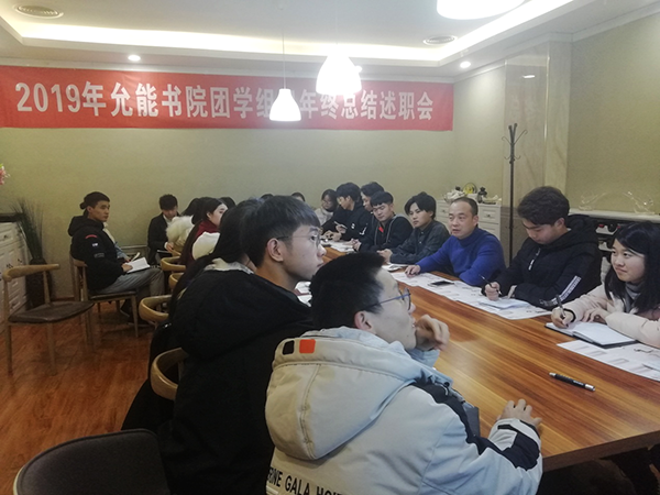 近日,允能书院在西餐厅召开了2019-2020学年第一学期学生干部述职总结会。书院分团委书记宋思迪和20多名学生干部代表参加了此次会议。