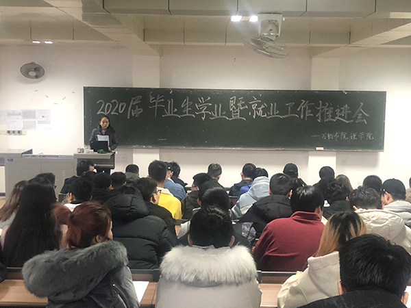 会上,王璐老师首先就2016级毕业生的论文撰写以及学业完成情况等进行了全面梳理和总结;其次,杨周礼老师结合学院各专业历年的就业情况向大家简要分析了当前的就业形势,他强调学生们应该时刻关注相关就业信息平台,积极就业、灵活就业。同时,在就业过程中要加强自身安全意识,掌握就业档案派遣流程;最后,辅导员老师就三方协议的签订、就业派遣等工作进行了详细说明,并希望学生们能够脚踏实地、不忘初心,在各行各业都能够发扬西京精神,成为有责任、有能力、有德行的人。