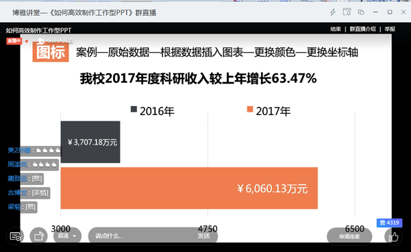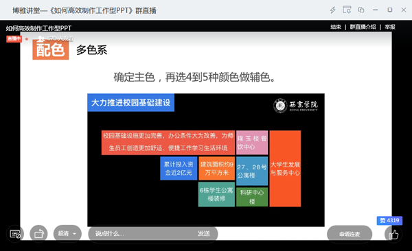 本次博雅讲堂在进行网络预告后,书院学生自觉自发地提前进群听课,学习态度积极,都希望通过此次讲座学习到制作PPT的实用技巧。