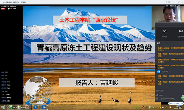 3月20日,土木工程学院本学期首次 “西京论坛”成功举行,受“新冠”疫情影响,本次论坛采用线上方式。论坛由吉延峻副教授做“青藏高原冻土工程建设现状及趋势研究”报告,土木工程学院约200师生参加。