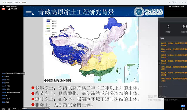 论坛结束后,部分学生与老师就冻土工程的设计原则在线上进行了热烈讨论。
