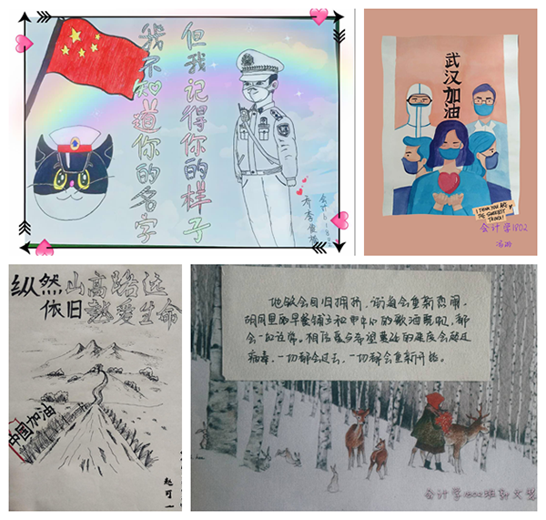 书院班级各班团支部号召同学把“把灾难当教材,与祖国共成长”,搜集抗疫素材,制作班级云板报,在班级群每周展出,激发学生爱国之情,践行报国之志。