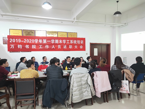 按照期末学工系统培训工作安排,1月6日下午,万钧书院全体教职工在会议室开展了《辅导员常规性工作手册》研讨暨本学期工作人员述职大会。