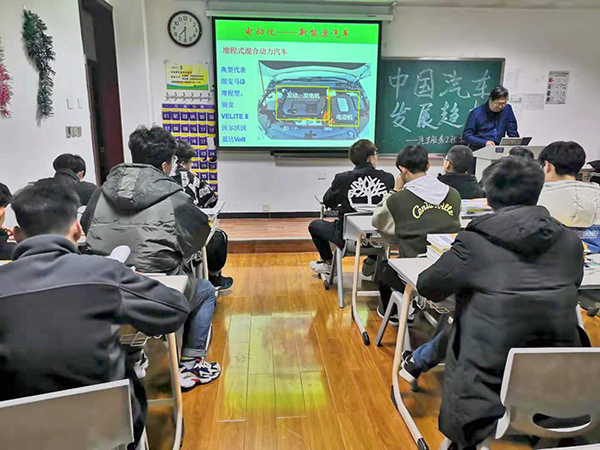 《中国汽车发展趋势》报告会中,李维教授针对汽车未来发展趋势——“新四化”(即:电动化、智能化、网联化、共享化)展开精彩讲解。语言深入浅出、通俗易懂、生动风趣,让同学们在轻松的氛围下更加了解汽车检测与维修等方面的专业知识,同时提到新能源汽车发展是为有效降低交通能源消耗和污染排放,更好地保护我们生活的环境。报告会激发了学生学习的积极性,让学生更加明晰专业前沿知识及未来发展方向。