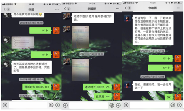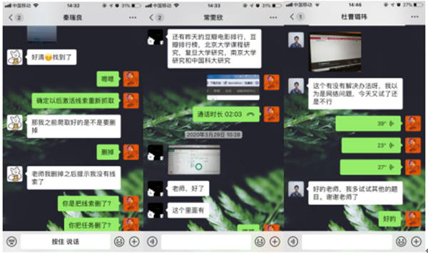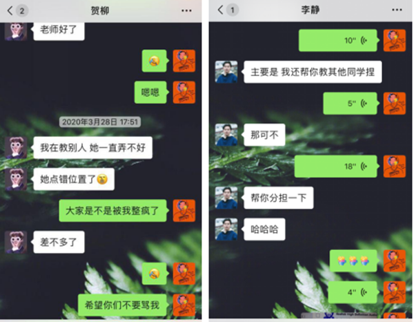 在具体学习过程中,每个学生遇到的问题均有所不同。教师们的微信保持在线,学生在练习过程中如有问题可以及时反馈,教师跟踪开展指导。
