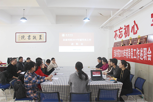 为落实立德树人根本任务,贯彻学校2019年学生工作会议精神。1月4日,西京学院至诚书院在书院会议室召开了2019年辅导员工作述职会,书院全体人员参加会议,会议由书院院长冯春燕主持。