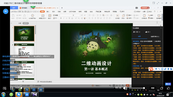 学院各教研室在寒假期间及时发布涵盖本专业的课程预习清单,让学生明确课程预习内容和要求,提前做好准备工作。此外,先后两次组织全体任课教师进行直播教学演练,收集汇总直播过程中师生反馈的问题,及时编写了网络授课测试总结,帮助任课教师持续改进。鼓励师生在直播课堂中多互动,通过在线讲授、在线讨论、提问、习题发布、作业批改等多种方式,增加学生的参与感。截至目前,设计艺术学院全员参加线上教学培训2次,动画、美术学、产品设计、环境设计、视觉传达设计教研室共组织集体备课3次。通过QQ群、微信群等,开展在线教学技术分享和交流会、视频备课会,把在线教学变成防控疫情之外的“第二战场”,开展起了红红火火的在线教学活动。