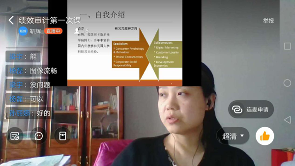 “线上教学对老师来说是一次教学模式的创新体验,对学生来说是一次自我约束能力的考验,我们教研室前期进行了集体备课,也提醒学生认真对待网络教学,做好预习、课堂上专注、积极思考、作业保质保量完成,上课的过程中我会跟同学互动的,要检查作业,抗击疫情让我们尽自己最大的努力,若干年后,当回忆起这段特别的时光,希望你会感谢奋斗中的自己。”这是财务管理教研室一位老师在线上为学生讲授《管理会计》课程的开场白。类似的话语,通过会计学院各位老师的传达,在开学第一天,温暖了每个学生的心田。