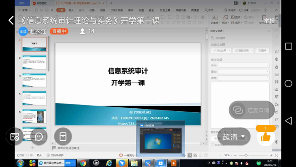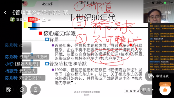 “教师是个良心职业,无论线上教学还是线下教学,我们的目的是让学生听懂学会。”2017级CPA教改实验班《公司战略》授课教师深有感触地说到。为了此次网络授课,他提前收集整合了大量课程相关资料,以疫情之下的中国企业应何去何从,引出战略选择问题,潜移默化之中介绍了本学期课程——公司战略管理的章节体系核心内容,思路设计巧妙。学生反应听了课后,觉得疫情下很多课程都要进行反思和变革,如审计要考虑任中审计和捐赠审计等,税法要考虑植入疫情下税务优惠政策,风险管理要考虑国家公共卫生风险应对……